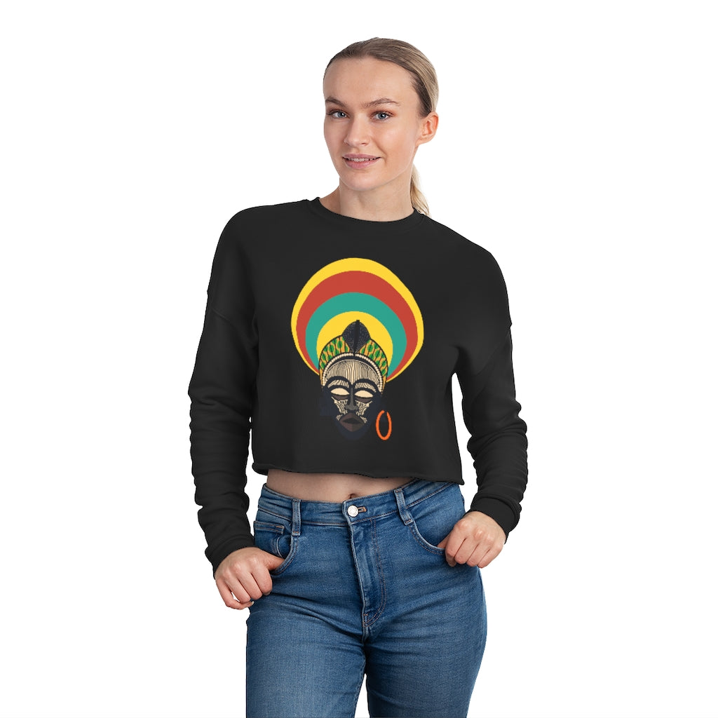 Tribal African Mask Cropped Sweatshirt